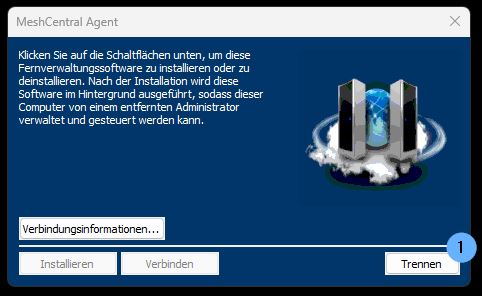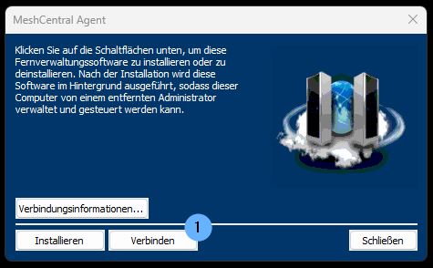 1. im MeshCentral Agent-Fenster auf "Verbinden" klicken
