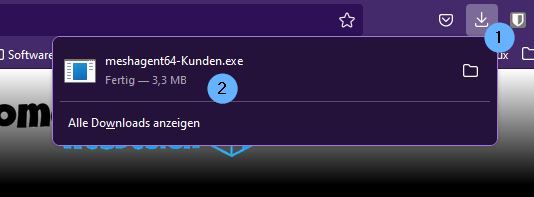 1. Rechts oben im Browser wird das heruntergeladene Programm "meshagent64-Kunden.exe" angezeigt